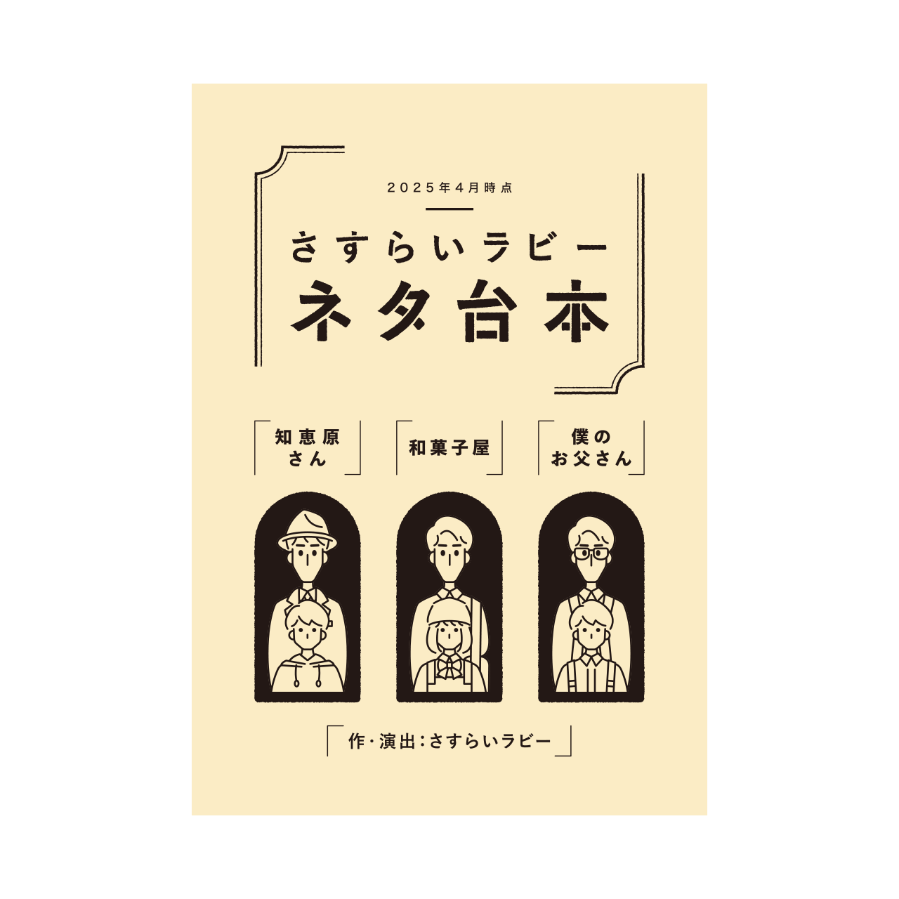 さすらいラビーのコント『知恵原さん』『和菓子屋』『僕のお父さん』のネタ台本となります!